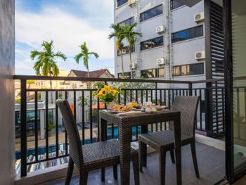 Удобное расположение в двух минутах от ночного рынка Malin plaza, рядом все необходимое: постирочная , 7eleven, кафе по более низкой цене чем на набережной. свежий ремонт, полотенца для бассейна и ежедневная уборка, Вода. радушный персонал.