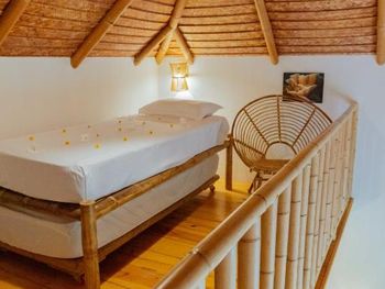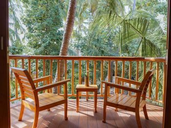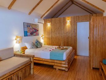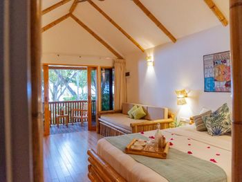 Отдых в отеле прошёл на ура и на отлично. Месторасположение просто супер - два шага и ты на пляже. Наш номер располагался в отдельном райском саду, с небольшой террасой , где были кресла и столик. Тут мы сидели, отдыхая и попивая напитки, чаёк за задушевными разговорами. Под пение птичек и шум волн. Ресторан располагается прямо на пляже на песке - завтракаешь, обедаешь, ужинаешь с прекрасными видами на океан, мимо проплывающих акул (по вечерам), вышагивающую цаплю, с видами на голубую воду. Видели даже однажды за завтраком резвящихся дельфинов. Отель, да и сам остров, утопают в зелени. Персонал очень дружелюбный и готовый помочь во всех вопросах. Также есть отдельно бар на пляже с навесом, диванчиками и креслами, столиками. И конечно же с видом на океан. Тут же наш отельный пляж с большими комфортными шезлонгами, зонтами, креслами и подушками-креслами. Есть местная библиотека у барной стойки, тут же есть игральные карты. В отеле можно взять в аренду маски и ласты. Обязательно снорклить, потому что у острова свой прекрасный домашний риф с богатой флорой и фауной. Плавают черепахи, множество разнообразных рыб, акулы (безопасные), мы даже один раз встретили стаю мант. Вечером ежедневно проходит кормление акул. Приплывают они в большом количестве и ждут лакомства в виде рыбы и остатков рыбной продукции с кухонь ресторанов от отелей. Также в компании с акулами приплывают скаты. В общем отдых удался. В отеле атмосфера релакса и спокойствия. И кстати концепция Эко - весь отель и практически все в нем сделано из бамбука и дерева. Питание вкусное. Рекомендую!!!