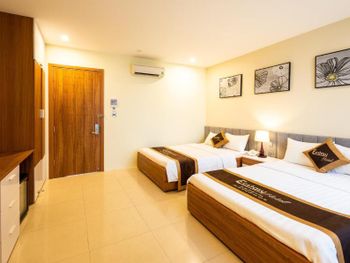 Ecstasy Hotel — это отель в городе Нячанг, в 700 м от такой достопримечательности, как Пляж Нячанга. К услугам гостей услуги консьержа, общий лаундж, терраса, а также бесплатный Wi-Fi. Также предоставляются гипоаллергенные номера. В распоряжении гостей отеля с 3 звездами — доставка еды и напитков и круглосуточная стойка регистрации. Этот вариант размещения с номерами для некурящих находится в 1,7 км от следующей достопримечательности: Башня Лотос.