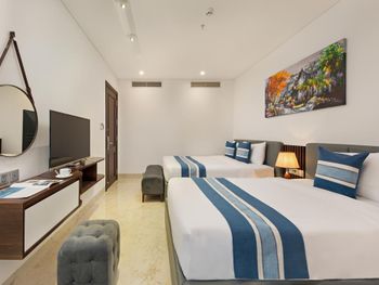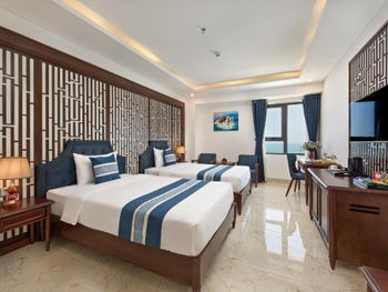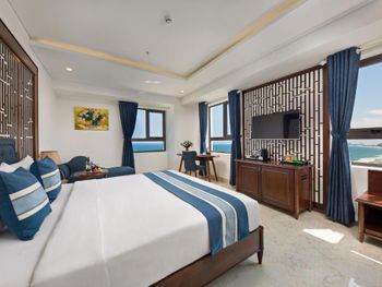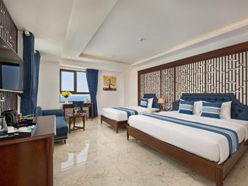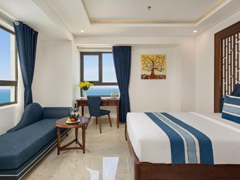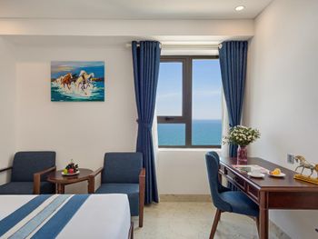 Наверное самый неприятный момент - это неприятный запах от полотенец, такое ощущение, что они или лежали около кухни, или прачечная находится около ресторана. Полотенца пахли едой. Остальные моменты скорее обусловлены тем, что отель совсем новый и его ещё полностью не оснастили и это можно легко исправить, а именно: - мой номер был рассчитан на 3 человек, но а нем всего было по 5 вешалок в двух шкафах, при чем один из них при входе для верхней одежды. - в шкафах не было секций с полками или ящиков для одежды - вся необходимая мебель была, но не хватало декора и уюта, например картин - пока голые стены - завтрак слабоват, но думаю это связано с маленьким количеством гостей И ещё, лучше все же брать номера с видом на море, так как вокруг достаточно грязно и не осень приятно на это смотреть, но это проблема не отеля, а всего Вьетнама