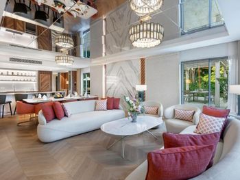 Уставший и грязноватый интерьер, особенно мягкая мебель и ковролин. За 545€ сутки в Лейк Хаусе можно было и Подушки предложить и мебель обновить . Пахнет хлоркой с бассейна, так что спали под кондиционером, который дует прям на кровать с противоположной стороны.