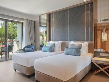 Первый и последний отдых в Турции.Первсонал не говорит на английском ,Знают 10 слов , но если проблема не понимают.Подушки плохие ,постельное белье с полиэстером. На бвлконах стоят деревянные стулья с подлокотниками ,что не распологает к отдыху.Брала вид на море ,зря переплатила .Солнце с утра до вечера , а тента нет ..ну и стулья. Гладильную доску принесли без паралонного покрытия и проженным ситцевым покрытием .Заменяли 2 раза , потом наверное купили . Шезлонги на пляже дешевые пласик без матрасов ,сервис плохой , приносят теплые напитки Потом переехали в номер с собственным выходом на бассейн ,там намного лучше ,но из за коврового покрытия в номерах ( а из бвссейна идешь в номер ) от воды намокает покрытие.Можно представить какой так грибок. При включенном кондиционере если открываешь дверь на балкон ,он выключается и это нормально, но после вы опять должны сами его включать. Ну и питание отдельная тема , За 400 евро в сутки ( вид на море ) и 600 ( домик у озера) я не ожидала кулинарных шедевров ,но что бы кормили так ужасно тоже не была готова. Продукты самые плохие , фруктов почти не было, а то что было в маленьких пиалках мелко порезаные .Не Птцца -это пирок политый кетчупом с плохой моцареллой.Картофель фри дети не ели , т.к замороженный мягкий картофель напоминал вату . а в куринных нагетсах нет курицы и так со всеми продуктами .Все жарится на на одной сковороде ,которая не моется .В связи с пандемией все в перчатках ,и в них же работают , берутся за сковородки , ящики, свою одежду ,посуду и накладывают руками еду (((( Я много раз жаловалось , что не нужно овощи брать руками , даже если руки в перчатках .Можно есть только турецкую кухню.Надеюсь у тех , кто приехал после 5 августа , в связи многочисленными жалобами многих людей , отдых будет приятнее.И последнее, если вы любите обедать ,завтракать , ужинать летом на уличных верандах, то Белек не ваше место. Очень жарко. Отель не натягивает на 4 . Еще можно много было написать , но и так достачно