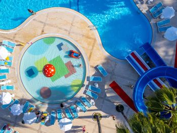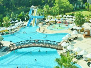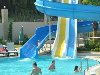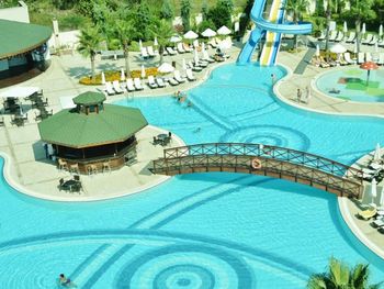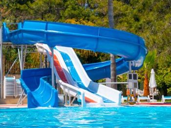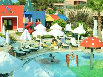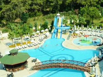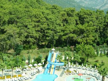 Территория компактная, бассейн отличный, горки стандартные (детям понравилось). Питание хорошее. Всегда можно выбрать блюдо. Мне очень понравились супы, вкусно. Много зелени, рыба каждый день была. Мороженое каждый день. Пиво вкусное, кофе по турецки тоже прекрасен.