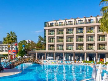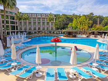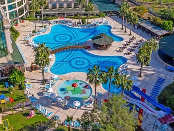 Территория компактная, бассейн отличный, горки стандартные (детям понравилось). Питание хорошее. Всегда можно выбрать блюдо. Мне очень понравились супы, вкусно. Много зелени, рыба каждый день была. Мороженое каждый день. Пиво вкусное, кофе по турецки тоже прекрасен.