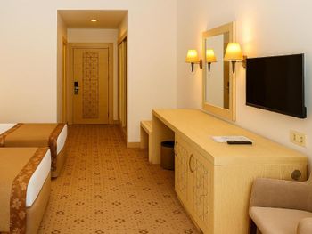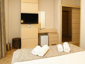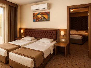 Номера требующие ремонта, старая сантехника. Аниматоры есть, но не работают, на предложения не отзываются, скучно.Не удобные подушки. Семейных номеров нет, они маленькие. В Хамаме банщик платный, но это просто развод на деньги, при массаже повредили шею, намекали что срочно нужен курс массажа!!!. В номерах не убирают в течении отдыха, только мусор меняют, иногда полотенца, так как они часто грязные приносят.