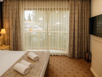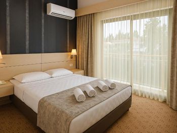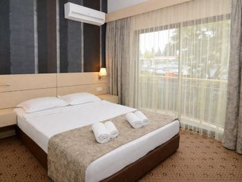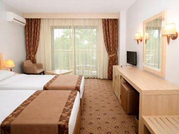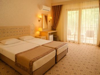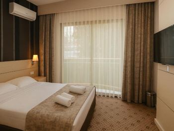 Отель хороший, нам очень понравилось. Были в конце сезона, людей уже не так много, но все ещё активно работает. Номер даже лучше, чем в бронировании. Спасибо большое аниматорам, они огромные молодцы, не во многих отелях встретишь такую хорошую команду, которая на своем месте и действительно качественно делает свою работу. Дети даже ходили лепить пиццу, поделки делали. Для взрослых зарядки, йога, степ и многое другое. Красивый вид на горы. Еда вкусная, в принципе всего хватает. Пляж хороший, лежаков много. Отель превзошел ожидания, рекомендую. Можно гулять по территории соседнего отеля garden.