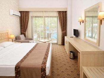 Были с30.09 по 4.10 в гостиницу приехали поздно , т к наш рейс опоздал на 4 часа , были с маленькими детьми , на ужин не успели , но возле отеля есть не большой ресторанчик ,купили там детям пиццу . Заказывали стандартную комнату 2+2 детей , для четверых маловата , попросили что то больше , нашли комнату выше категории не много доплатили ( мелочи ). Wi-Fi работает в комнате и в лобби отлично , но возле бассейна не было вообще . Wi-Fi бесплатный , еду можно было и разнообразить , но голодным не останешься , возле море с 10 до 16 тоже есть перекусы и бар . Напитки в баре пиво, коктейли с алкоголем и без , и бутылочная вода без ограничений , до море мы шли медленным шагом минут 7-10 ( с детьми )по дороге есть разные магазинчики .На территории отеля бассейн большой с горками и один мелкий для деток , так же есть напитки , а с 16до 17 раздают мороженое . Горки тоже включают как то по расписанию , но я так и не поняла , все время в разное время . Для маленьких детей есть качели и горка, так же есть домик где занимаются с детьми ( кружки ) .работают девочки аниматоры , музыка , йога, Зумба , водная аэробика , хочу отметить Натали и Оксану!!! Скучать не будете ! По вечерам есть для детей мини дискотека , и после для взрослых тоже можно поплясать и посидеть возле бара .Если хотите тишину , то заказывайте номер с выходом на сад , горы , так как возле бассейна музыка с утра и до позднего вечера , нам не мешало . В отеле есть так же сауна , спа , хамам , тренажерный зал , массаж ( платный). В лобби тоже есть бар с напитками . , ресторан еда однообразная , но голодными не останетесь , можно было для детей добавить картофель фри ! Можно заказать трансфер от отеля за отдельную плату , мы заказывали через букинг . До Кемера на автобусе минут 20 , билет стоит доллар с человека , но если нужны магазины , то слева и справа от отеля есть магазины , возле отеля есть ресторан где можно покушать , покурить кальян. От аэропорта до отеля ехать примерно час .