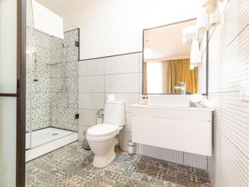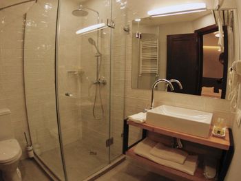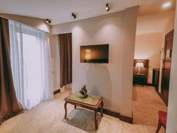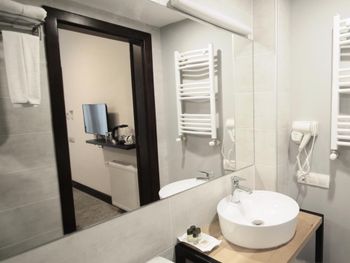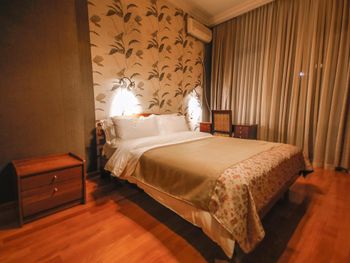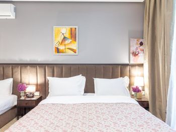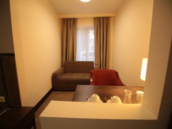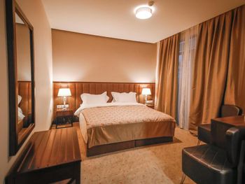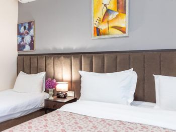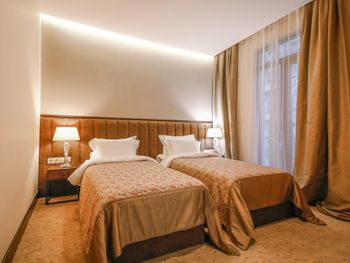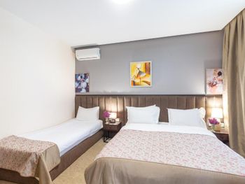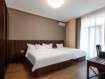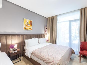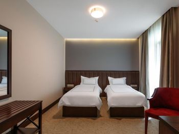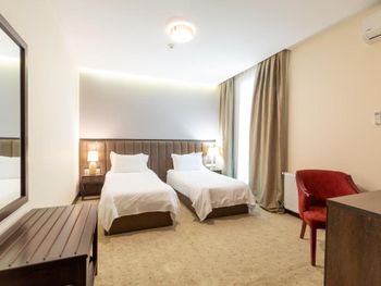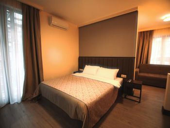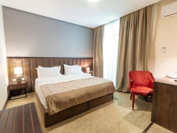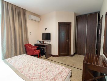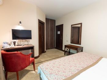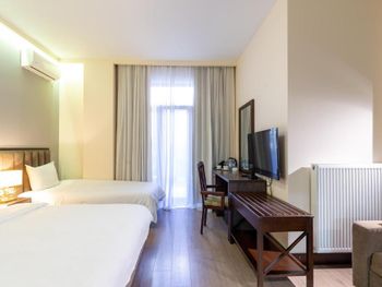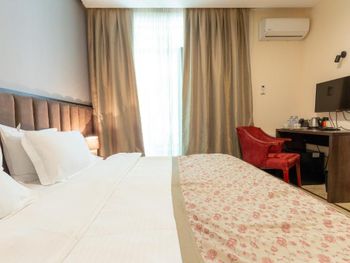 Мы бронировали четырёхместный номер с балконом - 29 кв.м. Никакого балкона не было совсем! Номер был не больше 20 кв.м. Нас поселили на 1 этаже. Отель совершенно не оправдал наши ожидания. Требуется ремонт и замена мебели, включая сантехнику. При заселении в 3-х местный номер было только два комплекта белья, третий пришлось просить. Телевизор не работал от слова "совсем". Обращения к персоналу не увенчались успехом, как итог, персонал просто извинился и пояснил, что помочь с наладкой телевизора не сможет. В номере - комары. Мебель очень старая, стены со следами недоделанного ремонта. Сейф в номере не работал, пришлось снова приглашать персонал для помощи и в этом вопросе. В отеле нет кафе (отель - 4* !!!), есть очень маленькая столовая на 4 столика для завтрака. Даже чая или кофе попить негде. Поскольку выезд был у нас ранний, то оплаченный завтрак оценить не смогу. К слову, уточнил по поводу возможности получения ланч-бокса, - получил отрицательный ответ, такой услуги нет. На вопрос - где можно в течение дня пообедать или поужинать - получил рекомендацию: "в городе". Очень затхлый, застарелый запах в номере. Номер весь темный, очень мало света как от окон (выходят во двор), так и от источников освещения. В номере очень некомфортно. Хотелось по скорее отсюда уехать. При выезде в 4 утра нам пришлось искать работника, поскольку на рецепшен никого не было. По сути можно было просто оставить ключи на стойке и уехать. В итоге мы обнаружили его в одной из свободных комнат, где он спал. Я выбирал этот отель по отзывам на Букинг, но они не соответствуют в полной мере действительности, поскольку описание "плюсов" отеля в реальности не соответствует действительности. Отелю при всей лояльности можно присвоить не более двух звезд. Цена явно завышена. Отель реально портит все впечатление от города и от самой Грузии. Однозначно не рекомендую отель к бронированию. Уверен, что положительные отзывы заказные, не попадитесь на эту уловку.
