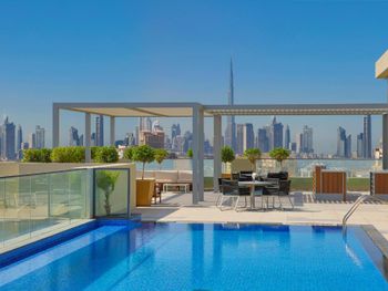 Отличный отель, расположенный в 7 минутах пешком от станции метро AL Jadaf. В номере есть все необходимое, включая плиту, стиральную машинку, холодильник, посуду, по запросу нам принесли стиральный порошок, сушилку для одежды и всякие мелочи, если нужно. Комфортная кровать, одеяла, подушки, все новое и очень удобное. Персонал отзывчивый. Завтраки вкусные, свежая выпечка каждый день, немного однообразное меню, через пару дней нам стали надоедать, но при этом всегда есть, что поесть и это вкусно. В ресторане доступ к кофе и чаю весь день бесплатно. На крыше небольшой бассейн, глубина 120 метров, несколько лежаков и зонтики. Есть также спорт зал, до него не дошли. Отель оставил приятное впечатление! Чистый и свежий, лучше чем многие, которые можно забронировать в том же ценовом диапазоне.