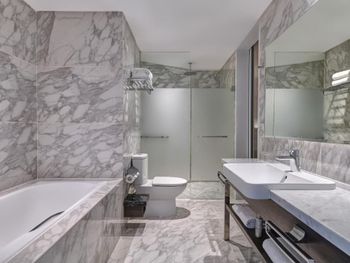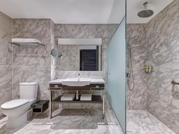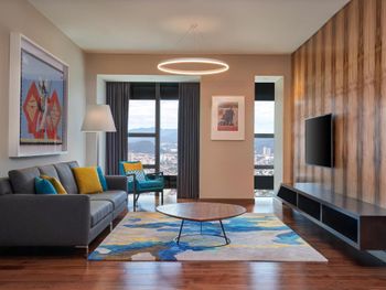 Номера-студии и люксы отеля отличаются просторной планировкой, а в дизайне преобладают природные материалы и цвета. Через панорамные окна гости могут полюбоваться на городской пейзаж. К услугам гостей кровать Westin Heavenly®, фильтр для воды 3M, сертифицированный по стандарту NSF, телевизор с плоским экраном и технологией SMART TV, рабочий стол и энергосберегающее светодиодное освещение. В отделанной мрамором ванной комнате оборудован душ с горячей водой и/или ванна, а также предоставляются бесплатные органические туалетно-косметические принадлежности в многоразовых диспенсерах. Во всех люксах есть собственная кухня, где гости могут приготовить еду на скорую руку.