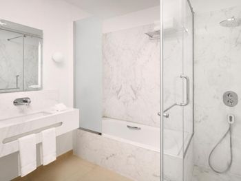 В номерах Element by Westin West Bay Doha установлен кондиционер, сейф и телевизор с плоским экраном. Среди прочих удобств — письменный стол, кофемашина, холодильник и микроволновая печь, а также собственная ванная комната с душем. Помимо собственной ванной комнаты с ванной и бесплатными туалетно-косметическими принадлежностями, в определенных единицах размещения в Element by Westin West Bay Doha из окон открывается вид на город. Гостям Element by Westin West Bay Doha предоставляются постельное белье и полотенца.