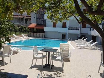 расположение на окраине, рядом дикий пляж, без лежаков, но очень приятный, мало народа. хороший бассейн в самой гостинице
