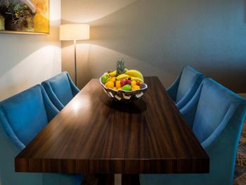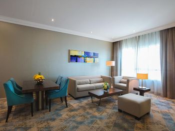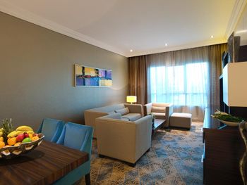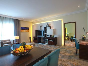 В ресторане Monarch сервируют разнообразные блюда интернациональной и арабской кухни по меню и в формате «шведский стол», а в кафе Bazerkan предлагают легкие блюда и выпечку. Доставка еды и напитков в номер осуществляется круглосуточно. В лаундже-кальянной можно заказать кальян на любой вкус.