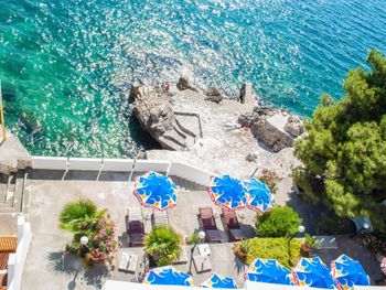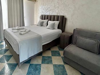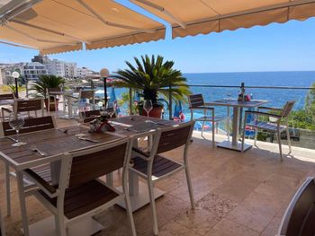 Расположение - супер!!! Завтраки скромные, но голодным не останешься. Хозяева и персонал отеля приятные и вежливые, обстановка почти домашняя. Море в 10 метрах - это камни, спуск в море по лесенке или можно сразу прыгать (мы прыгали))). Рядом в 50 метрах маленький галечный пляж. Ещё чуть дальше (100 метров) - песчаный.