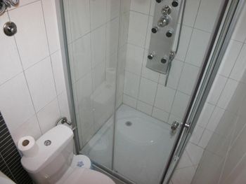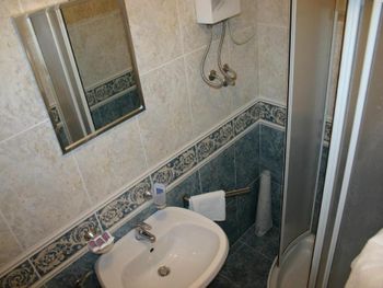 Элементы полочек в ванной чуток изжили свое, тесные душевые кабинки, есть подозрение, что давно не чистился кондиционер, маленькие полотенца, соленоватая вода из-под крана