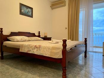 Вид с балкона замечательный. Море кристально чистое. Номера чистые. Завтраки хорошие, вкусный кофе. Семья Георгия и сам Георгий очень добродушные, всегда и во всём готовы помочь и принять участие. Имеется своё кафе, где приготовленные блюда и десерты самые вкусны и очень разумная цена.