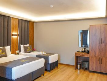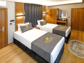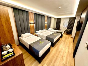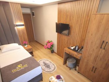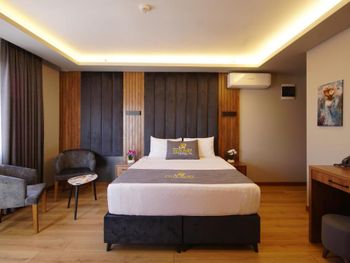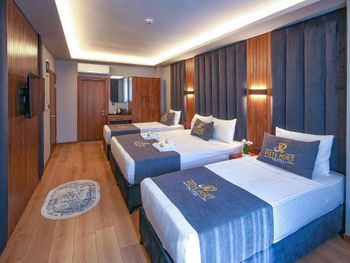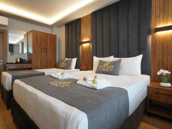 Отель небольшой, персонал вежливый , а номере было чисто , кровать удобная. Но это не 5 звезд. По европейским параметрам на 5 звезд не тянет. Находится в не туристическом районе. Здесь можно увидеть настоящую Турцию. Торговля идет бойкая