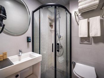 В номере есть всё, что нужно. Спать комфортно, хороший напор воды, достаточное количество мыльных принадлежностей.
