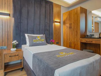 Очень приветливый и отзывчивый персонал. За них - отлично! Вход в отель чистый, но сразу бросилось в глаза неживые растения. Приехали около полуночи, но персонал ждал и помог расселиться. Такси от аэропорта не дорого, но только в лирах.