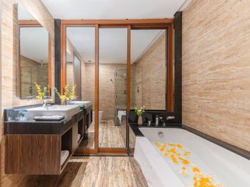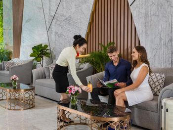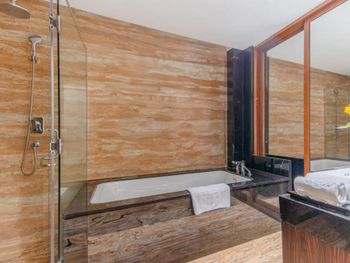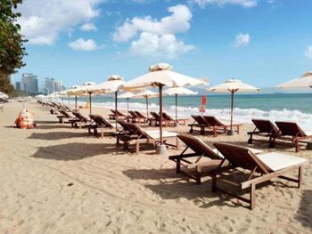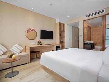 Уборка в номере: полы за 24 дня нашего проживания не помыли ни разу. При заселении они были липкие и грязные с пылью и чужими волосами. Мы заселились поздно вечером и уже не было сил после длительного перелёта просить убрать номер. Попросили на следующий день, стало чуть-чуть чище, но все равно босиком наступать неприятно. Поняли, что мыть они просто не умеют. Потом каждый раз видели, как при уборке номеров просто выметают мусор веником. Пыль так-же не протирают нигде. Лифты: это полный ужас. Мы жили на 24 этаже и иногда, чтобы спуститься или подняться в номер тратили минут по 15. В отеле очень много китайцев, которые орут, толкаются, забиваются в лифт так, что находиться там становится невозможно. Это огромный минус и нам очень жаль, что мы сразу оплатили 24 дня и не могли переселиться в более спокойное место. Пляж и пляжные полотенца: подобного я не видела ещё нигде и никогда. Пляжные полотенца выдают на пляже 1 раз в день, причем, унести их с собой в отель нельзя. Если пришёл утром, потом ушёл, то уже в течение дня больше полотенцем воспользоваться не сможешь. Перестают выдавать полотенца уже до 16 часов, в 16 их забирают, даже если ты не собираешься уходить с пляжа. Но ведь в основном все приходят купаться именно после 16. Лежаков очень мало, лучше не рассчитывать на них. После 16 их так-же, как полотенца складывают и воспользоваться уже нельзя. Завтрак: обычный, азиатский. Из мяса свинина, курица чаще несъедобные куски с костями, но пару раз было без костей и вкусно. В целом поесть что-то можно. Интернет: может быть на разных этажах он работает по-разному, но у нас в номере постоянно вылетал или сигнал был очень слабый. Поскольку мы отдых совмещали с работой, это очень сильно мешало. Бассейн: очень маленький, один раз вечером пришли, но в воду заходить не стали, она была мутная и грязная. Потом минут через 15 (было 9 вечера) увидели, как сотрудник отеля начал выгон,ть из бассейна людей, объясняя, что бассейн нужно чистить.