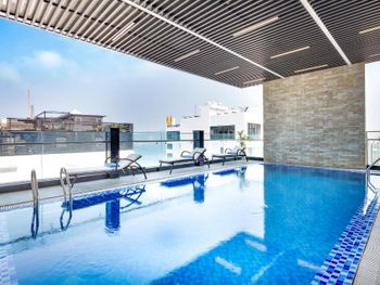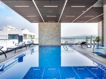 Лифт бывало что не дождешься , очень много китайцев , которые , к слову могут тупить и встать на выходе из лифта не выпуская тебя из него Бассейн очень маленький на 28 этаже Есть спа, но конечно там дороже на 30-40 % чем в салонах на улице