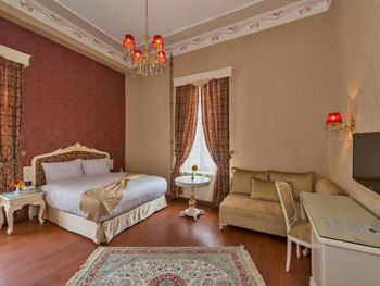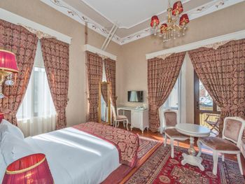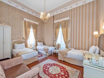 Прекрасный номер с неуставшим ремонтом, великолепный балкон с видом на Мраморное море. Само здание аутентичное, что вызывает ощущение нахождения в обстановке начала 20 века. В коридорах и на ресепшен также сохранен стиль и концепция всего отеля. 5-7 минут неспешного шага до исторического центра города. Завтрак в крытом стеклянном шатре, также прибавляет шарма этому месту