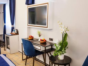 Вот тут много чего: 1. Booking система выдала за эконом вариант номера стоимость как за сьют, не меньше - даже администратор при заселении увидев ценник очень удивился, сказал, что поменяет нам уровень номера и даст получше, но не эконом. Но мы рано обрадовались. 2. Номер со слов администрации отеля один из лучших в отеле. Вид и правда хороший - в такой плотной застройке окно выходило в сторону залива босфор и крыши соседних домов. НО, напротив на крыше фигачила вентиляция, промышленная, без остановки - то есть окно не оставишь открытым надолго. Плюс на крыше самого отеля тоже стоит вентиляция и ровно над нашим номером оказалась. А от нее был довольно значимый гул. У кого чуткий сон - спать в этом номере сложновато. Первую ночь из трех отмучались кое-как 3. Администраторы. Утром попросили поменять номер. Администратор на стойке (это был уже другой, не который нас заселял) уверил нас, записал номер комнаты, куда перенесут и наши вещи в том числе - заверил нас в этом. при этом попросил поставить за сервис оценку 10))) Мы сказали- сначала номер, потом оценка. Как мы оказались правы! Вернувшись в отель поздно вечером уже другой администратор с удивлением долго на нас смотрел, сказал что переселить нас не может, так как отель полон и мы остаемся в том же номере! Никакие попытки выяснить почему так получилось ник чему не привели, прошлый админ просто не брал трубку - короче сори-сори но никак, давайте утром точно переселим - но как не спать еще одну ночь он не ответил. Утром, как вы можете догадаться уже другой админ и менеджер получили кучу эмоций от нас. 4. Рум сервис. В первое утро, кое как заснув под утро, мы были разбужены орами и громкими разговорами уборщицами номеров. Нафига так орать утром и разговаривать через весь холл - известно только им. Следующее утро, примерно в 7 нам звонят в номер и типа "сори-сори, лед сейчас принесем". Какой лед! Нам не надо никакого льда, оставьте в покое, мы спим! Через 5 минут настойчивый стук - принесли лед!