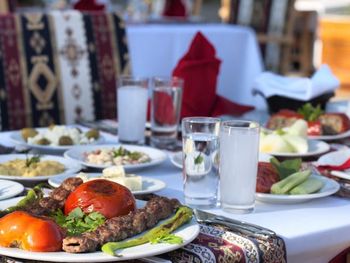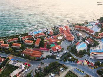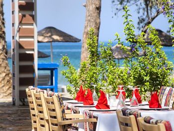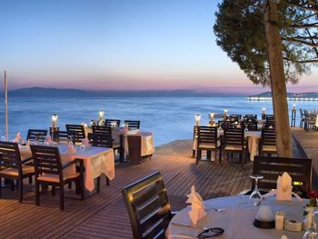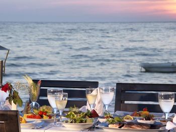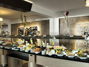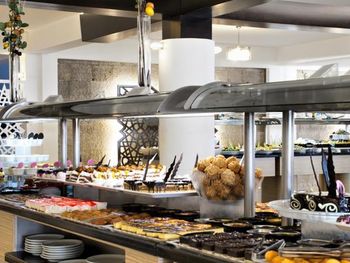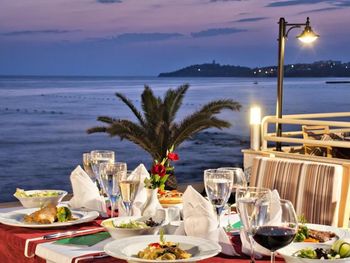 В главном ресторане отеля Sunset гости смогут попробовать блюда турецкой и международной кухни, в ресторане с обслуживанием по меню — блюда китайской кухни, в ресторане La Veranda — блюда итальянской кухни. Также к услугам гостей рыбный ресторан Nautilus с видом на море и бар с широким выбором алкогольных и безалкогольных напитков и фруктовых коктейлей.