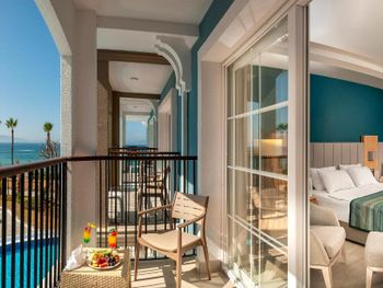 Хороший отель. Очень чистые и комфортные комнаты с видом на море или бассейн. Вид очень красивый. Убирали хорошо, каждый день, с ежедневной сменой полотенец. Подушки неудобные. Все соответствует фото на сайте. Красивая, зеленая територия. Около 6 бассейнов с хорошим аквапарком ( закрывается в 17). Один бассейн с теплой водой, есть детские бассейны и горки. Еды много, все вкусно и разнообразно. Голодным остаться невозможно. Снэк бары ( 2) работающие с 12.30 до 17.00 с вкусными нагетсами, пицами местными гезлеме и питой. В меню каждый день что нибудь новенькое. Морепродуктов не было, только рыба. В ресторан записываться не стоит. Его организовали рядом со снэк- баром (импровизировано). Китайский был закрыт. Мы выбрали ресторан морепродуктов-не впечатлил. Креветки маленькие, не вкусно приготовленные, была рыба. Лучше сходить в общий зал.