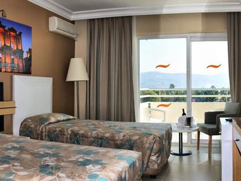 Номера отеля Ephesia со вкусом оформлены в мягких тонах. В числе удобств — кондиционер и балкон. Из некоторых номеров открывается замечательный вид на Эгейское море.