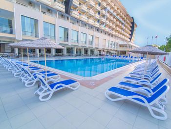 Ребята! Это исключительно семейный отель- не вздумайте ехать сюда с подружкой или с целью познакомится и потусить! Здесь пенсия и скукота! Если хотите спать и есть и купаться - то Вам сюда! Это не место отдыха молодежи! Ночных клубов особо нет! Все вкусно, чисто, спали с открытым окном под шум моря! Пляж отличный и в 10 метрах от отеля!