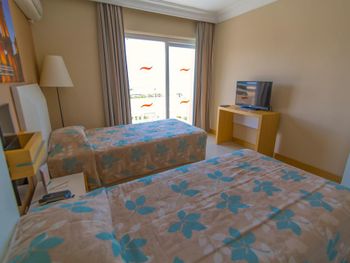 Данный отель абсолютно не соответствует описанию данных и четырём звёздам!! В отеле всего два вида комнат: с видом на море и видом на стену соседнего отеля, который описан как «вид на окрестности». По сути это никакие не окрестности, а просто стена соседнего отеля, увешенная огромным количеством кондиционеров. Звук от них не умолкает весь день и ночь. На первом этаже соседнего отеля находится кухня, соответственно, постоянно гремит посуда, громко разговаривает персонал, постоянный неприятный запах. Короче, балкон открывать не стоит. Света естественного мало, комната темная.