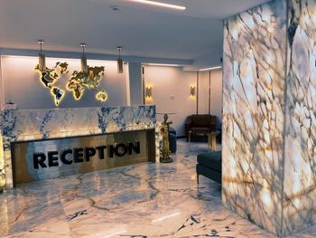 Сотрудники круглосуточной стойки регистрации говорят на нескольких языках: арабский, английский, фаррский и русский.