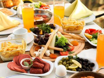 Каждое утро в отеле сервируется завтрак «шведский стол». Кроме того, для гостей сервируется бесплатный кофе, чай, кофе, безалкогольные напитки и печенье.
