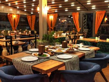 ресторан на террасе и при чем не на завтраке, а по меню. вкусно и недорого.