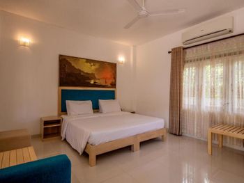 Замечательный отель, красивый, есть зеленая небольшая территория. Только не хватает бассейна, но можно полежать на лежаках. Номера в хорошем состоянии, есть адаптер для розеток, а также фумигатор. Убираются каждый день, меняют полотенца, все очень чисто. Персонал очень приветливый и отзывчивый. Отдельно нужно упомянуть еду, обязательно советую попробовать, очень вкусно. Есть как европейские, так и ланкийские блюда. До пляжа и кафешек 5 минут.