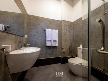 Хотелось бы, чтобы в номере были одноразовые тапочки. Пол бетонный, немного дискомфортно