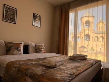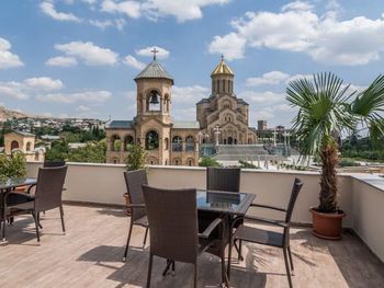 Отель находится прямо напротив Собора Святой Троицы в районе Авлабари. Сразу должна предупредить, в колокола могут бить в 6 утра, поэтому если сон чуткий, возможно стоит выбрать что-то еще. Номера просторные, у некоторых есть небольшой балкончик. Для гостей также терраса наверху, доступ открыт круглосуточно. Завтраки в формате сет-меню. Готовят неплохо, хотя и не сказать что как-то особенно разнообразно: в один день яйца,в другой каша гречневая и котлета, в третий рис с овощами. Рядом с отелем есть киоски с кофе, прямо через дорогу.