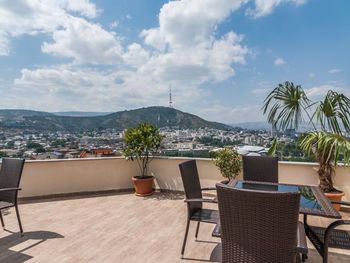 Персонал-отличная команда! Расположение-удачное(церковь Самеба прям из окна,как ориентир очень удобно)!Есть терраса с отличным видом -весь город,как на ладони(вечером ещё круче)!