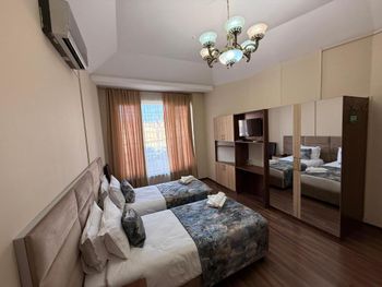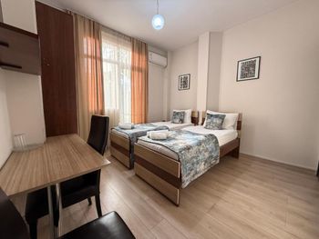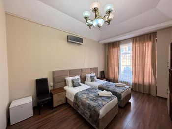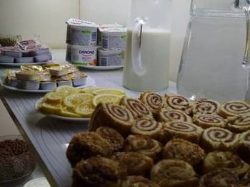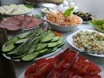 Стандартный сытный вкусный завтрак (творог, сметана, салат, сосиски, гарнир, нарезки сыра, колбасы, помидор, огурцов, свежая зелень, оливки), по желанию вам приготовят омлет, кашу или кофе по-турецки. Отличное расположение в старой части города.