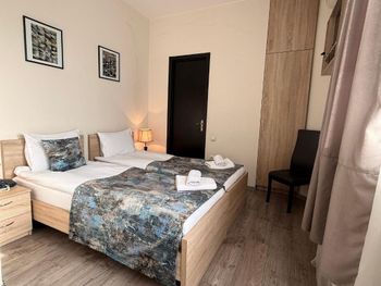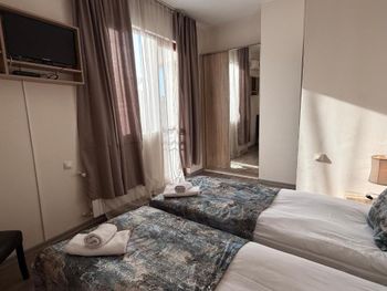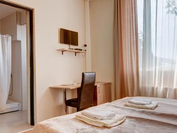 Номера тесные. Отвратительная звукоизоляция: ночью кто-то воду сливает, то храпят неизвестно где, то выпившие выясняют отношения. Завтрак посредственный. Номер требует хотя бы косметического ремонта. Окно открыть на ночь нежелательно всю ночь ездят машины прямо под окнами.
