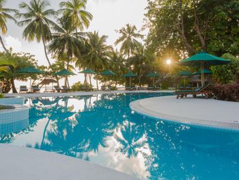 Удачное расположение, отличная, очень зеленая, уютная территория отеля, доброжелательный персонал, близость пляжа с большим количеством пальм, дающих тень и бесплатных лежаков. Бесплатный прокат велосипедов (были по системе все включено), снорклинг (были 2 раза - один раз в красивом месте, другой раз место было так себе, возят на катере на границу рифа). Питание шведский стол, большого разнообразия нет, но всегда было мясо, рыба (в основном тунец), курица, картофель, рис, макароны, фрукты, выпечка, и блюда были разные практически каждый день. Напитки приносит официант, по системе все включено возможно брать алкоголь (брали вино, пиво) в ресторане и баре. Наш официант был очень доброжелательный и предупредительный, помог купить средство от местных комаров, которое помогало. В океане много разнообразных красивых рыб, видели рифовых акул более 1 метра длиной на снорклинге и очень мелких у берега, с волнореза. Были в июле в сезон дождей, часто была облачность, периодически шли дожди, чаще ночью, купались каждый день, погода не мешала, температура воды и воздуха всегда была около 30 градусов, высокая влажность, но хорошо переносится. Большая часть постояльцев немцы, много русскоязычных. Номера хоть и немного староваты, но очень удобны, все рабочее, есть сейф, небольшой холодильник, чайник, фен, гладильная доска, утюг, кондиционер, потолочный вентилятор. Кровати удобные, подушки как и везде не очень, подкладывали надувные. Уборка номера и смена полотенец ежедневная, на каждого выдают большие пляжные полотенца и для ванной (для тела и ног отдельные) и 2 бутылки питьевой воды по 0,5литра. Загрузка отеля 10-15%(так как не сезон и эпидситуация в мире), часто бывали одни на пляже. Есть тренажерный зал, в основном с кардиотренажерами и небольшим количеством силовых, есть штанга, хороший набор гантелей.