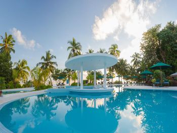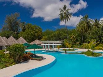 Курортный отель Equator Village с открытым бассейном и собственным пляжем расположен на острове Ган.