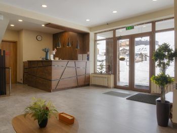Очень хороший персонал на ресепшн, который поможет в любой ситуации, не только касательно проживания. Есть кухня при отеле. В номерах тихо, чисто и тепло, есть сушилки и комната для снаряжения. До нижнего подъемника 10 минут пешком.