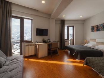 Номер полностью соответствует описанию. Комнаты чистые, комфортные. Персонал приветливый и позитивный ❤️. До канатки от отеля 7 минут пешком.