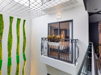 Сама конструкция отель очень спорная. Окна номера (мы жили на 17 этаже) расположены с видом на соседний номер между которыми расстояние несколько метров. Т.е. не только отлично слышно о чем общаются соседи, но и прекрасно видно. Кроме того это же окно выходит в общий холл высотой 27 этажей, т.е. с маленького балкона открывается вид на все подобные номера и если постоялец например на 13-ом этаже слушает музыку или ругается, то ты это прекрасно слышишь, т.е. максимальная слышимость со всех номеров...