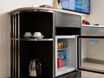 Очень сильно шумит система кондиционирования в номерах, оканчивающихся на "...06". Как оказалось этот огромный шумный ящик кондиционера обслуживает все кондиционеры всего этажа, и расположен он в номерах на "...06" по всему "стояку" здания. В связи с этим не открыть балкон, очень шумно. Мы вопрос решили переездом в другой номер.