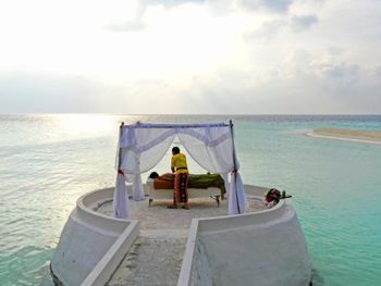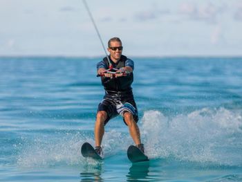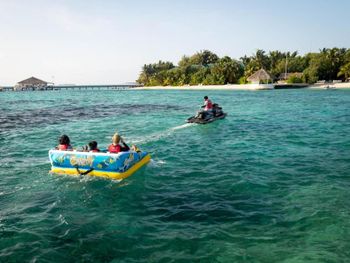 По морю здесь ужасное разочарование , пишут что хороший риф, но риф умер на 99% , встречаешь акул , черепах, омаров , рыб хирургов , спинорогов . Но! Вечером сливают отходы около рифа , баки около 17.00. Зачем тогда я плачу экологический сбор? Также в воде на стороне большого пляжа ужасно пахнет канализацией. Я видела под водой 3 трубы около острова , длиной не более 30 метров , поэтому всё что остаётся от отходов человека приносит на пляж, купаться в такой воде не будешь, пахнет очень, спрашивала администрацию сказали что да труба с отходами.