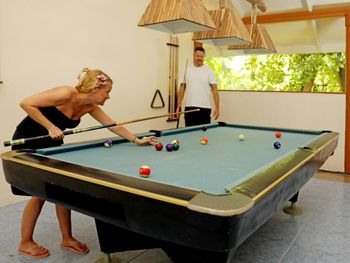 При небольшом выборе порадовало качество блюд в ресторане, рыба и мясо не зажарены до состояния подошвы, что не редкость на Мальдивах. Хороший домашний риф по части живности: акулы няньки, черепахи, рифовые акулы, скаты, осьминоги