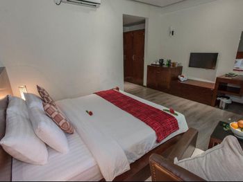 Отдыхали с 10.08.21-20.08.21г. В наши пляжные виллы поселили только на следующий день после прибытия, объяснив что отель полный и так бывает! В отель давно не вкладывали деньги, рецепшен просто страшный с обвалившейся штукатуркой и торчащими проводами. Зрелище печальное! Везде голуби! Вода 5 $ без налогов! На завтраке только соки, воду не дают. Бесплатно только по 0,5 литра в сутки на человека! НЕ поздравили с Днём Рождения! Очень невнимательный и безразличный менеджмент отеля!